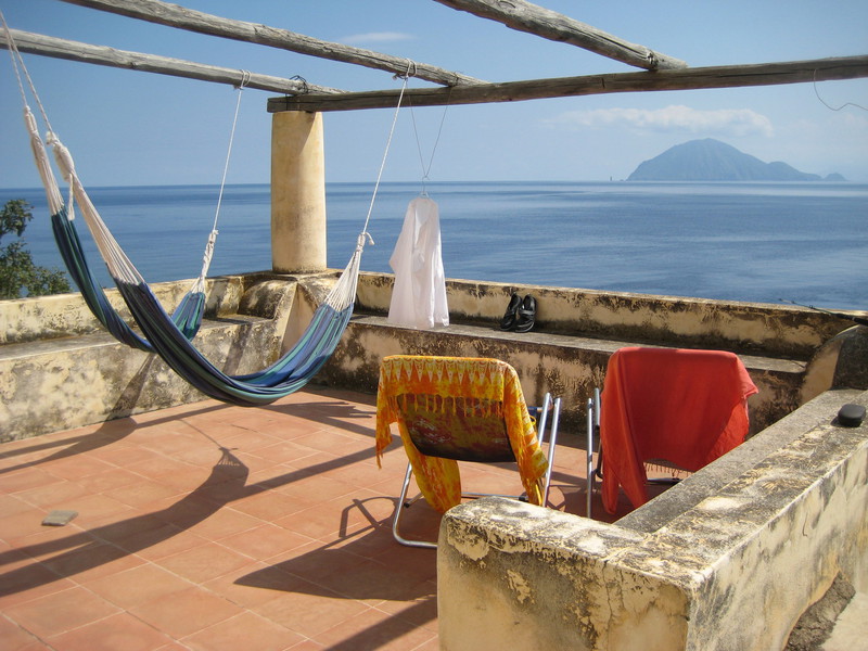 Das Casa Bazzina liegt direkt am Meer. Wer gern wie Robinson Crusoe morgens seinen Fisch fangen und abends auf der Terasse grillen, frische Brioche per Boot von Anna's Laden holen, tagsüber angeln, in der Sonne chillen oder die Inselwelt erkunden möchte, ist hier genau richtig. Besonders eindrucksvoll ist es, direkt am Steinstrand vor dem Haus jeden Tag die Sonne über den äolischen Inseln aufgehen zu sehen. Ideal für Sonnenanbeter, Flachländer (kein Treppensteigen!) Wasserfreaks, Angler, Schnorchler, Taucher und Strandgutsammler. Hier haben Sie Ihre absolute Ruhe, das Haus ist entweder per Boot oder über einen öffentlichen Fußweg erreichbar und ca. 20 min von der Alicudi Hafenmole entfernt.